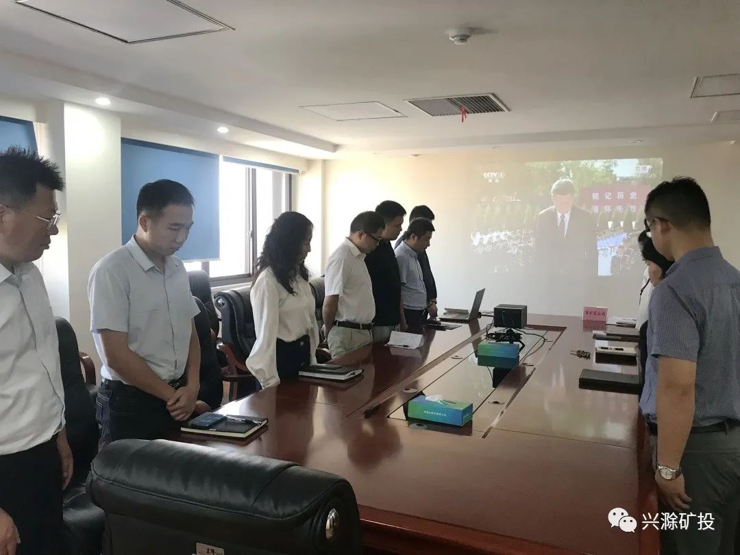 9月3日上午,市礦投公司組織全體職工集中收看中國人民抗日戰(zhàn)爭暨世界反法西斯戰(zhàn)爭勝利75周年紀(jì)念日向抗戰(zhàn)烈士敬獻(xiàn)花籃儀式現(xiàn)場直播。隨著國歌唱畢,公司全體職工肅立,向在中國人民抗日戰(zhàn)爭中英勇犧牲的烈士默哀。