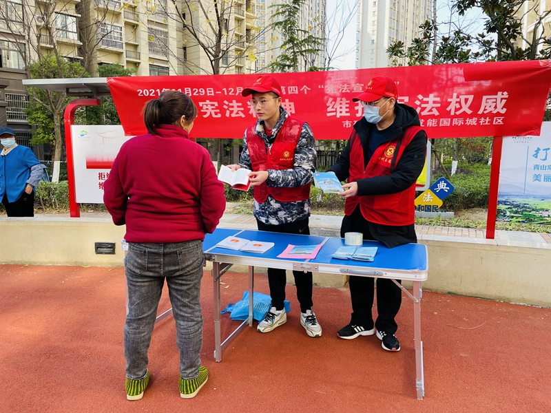 今年的憲法宣傳主題為“以習(xí)近平法治思想為指引,堅(jiān)定不移走中國特色社會(huì)主義法治道路”。在社區(qū)法治小廣場,志愿者向居民發(fā)放憲法宣傳手冊,講解國家憲法的由來、地位、主要內(nèi)容以及學(xué)習(xí)宣傳憲法的重要意義。