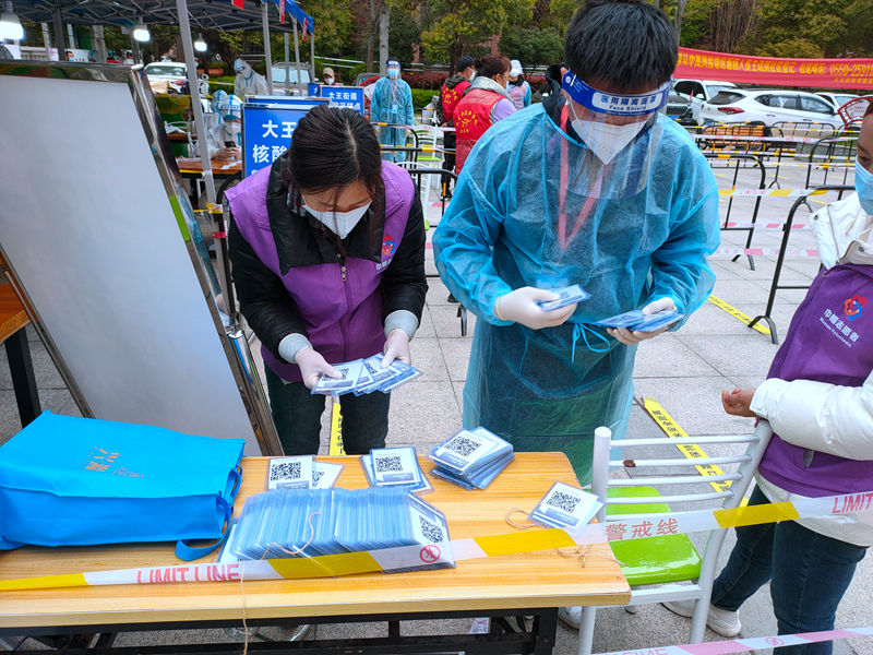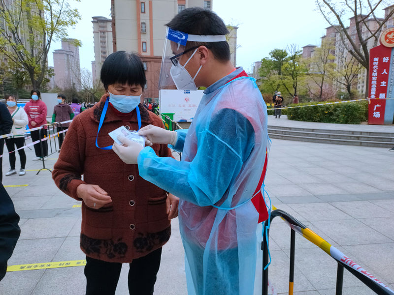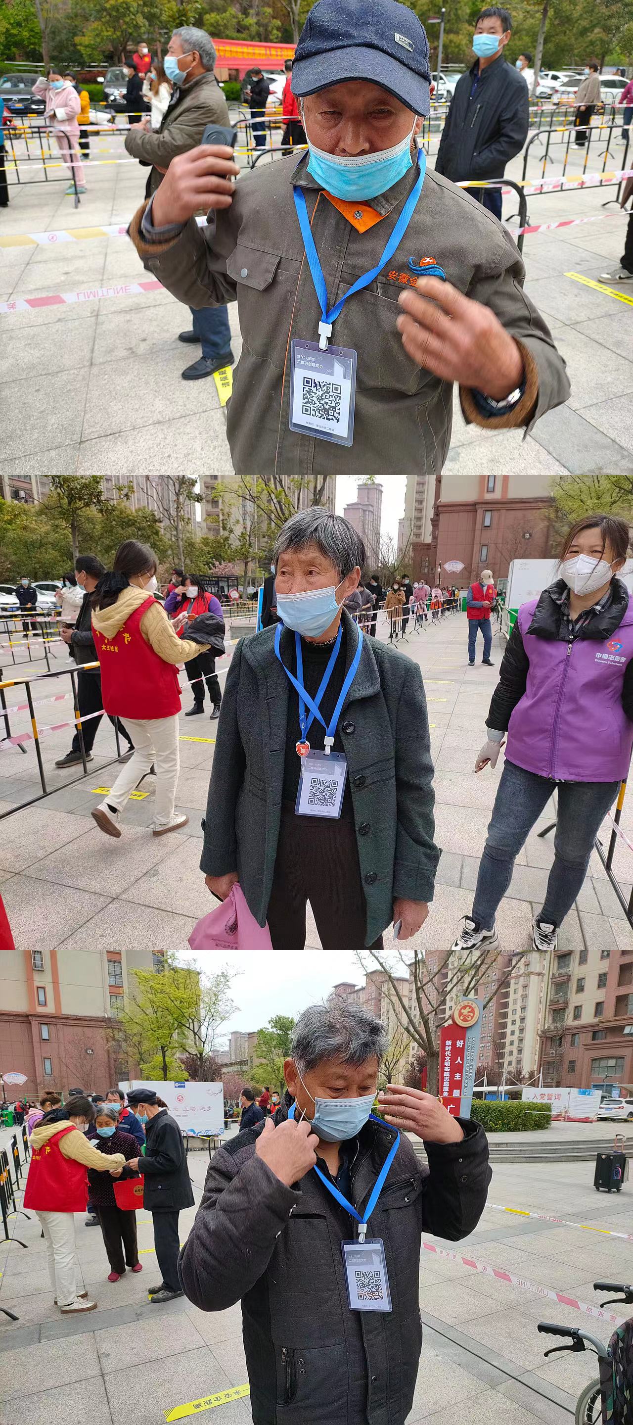 連續(xù)3天的志愿服務后,為進一步優(yōu)化方式、提升效率,志愿者們利用1天短暫休息時間,收集所有手機中錄入形成的核酸檢測碼并分別打印制作成胸牌,于翌日分發(fā)至每位老人手中,有效減少了老人等待時間較長、人員易聚集等現(xiàn)象,從源頭上解決問題,讓“綠色通道”更加暢通,讓參加核酸檢測的老人體會到更加貼心、更高效率的志愿服務。