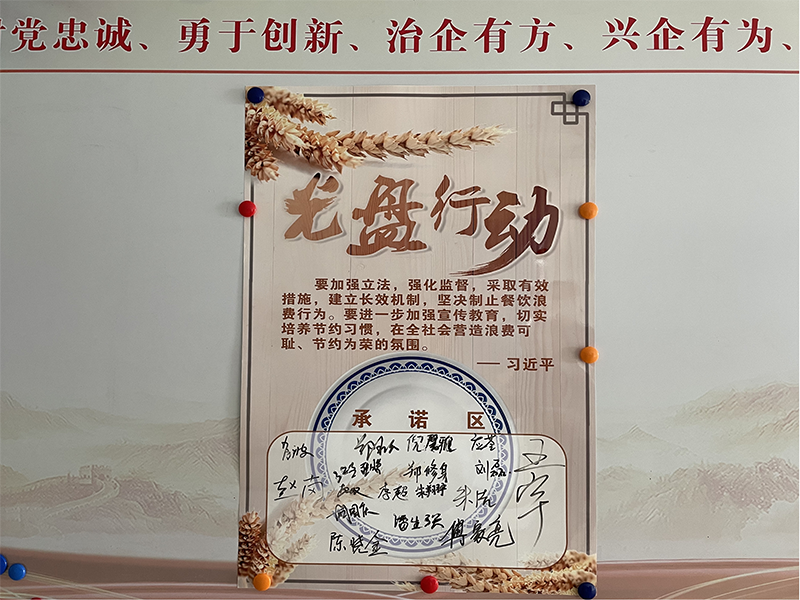 知行合一,積極參與,共做“勤儉節(jié)約”的踐行者。組織全體員工簽寫“光盤行動(dòng)倡議書(shū)”,積極營(yíng)造節(jié)約糧食、珍惜食物的氛圍。
