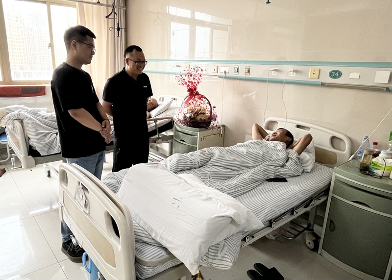 生產(chǎn)運營部經(jīng)理儲彪代表公司轉(zhuǎn)達了對患病職工的關(guān)心,并詳細了解治療恢復(fù)情況,囑咐他要保持良好心態(tài),積極配合醫(yī)院的治療,爭取早日康復(fù),回歸工作崗位。